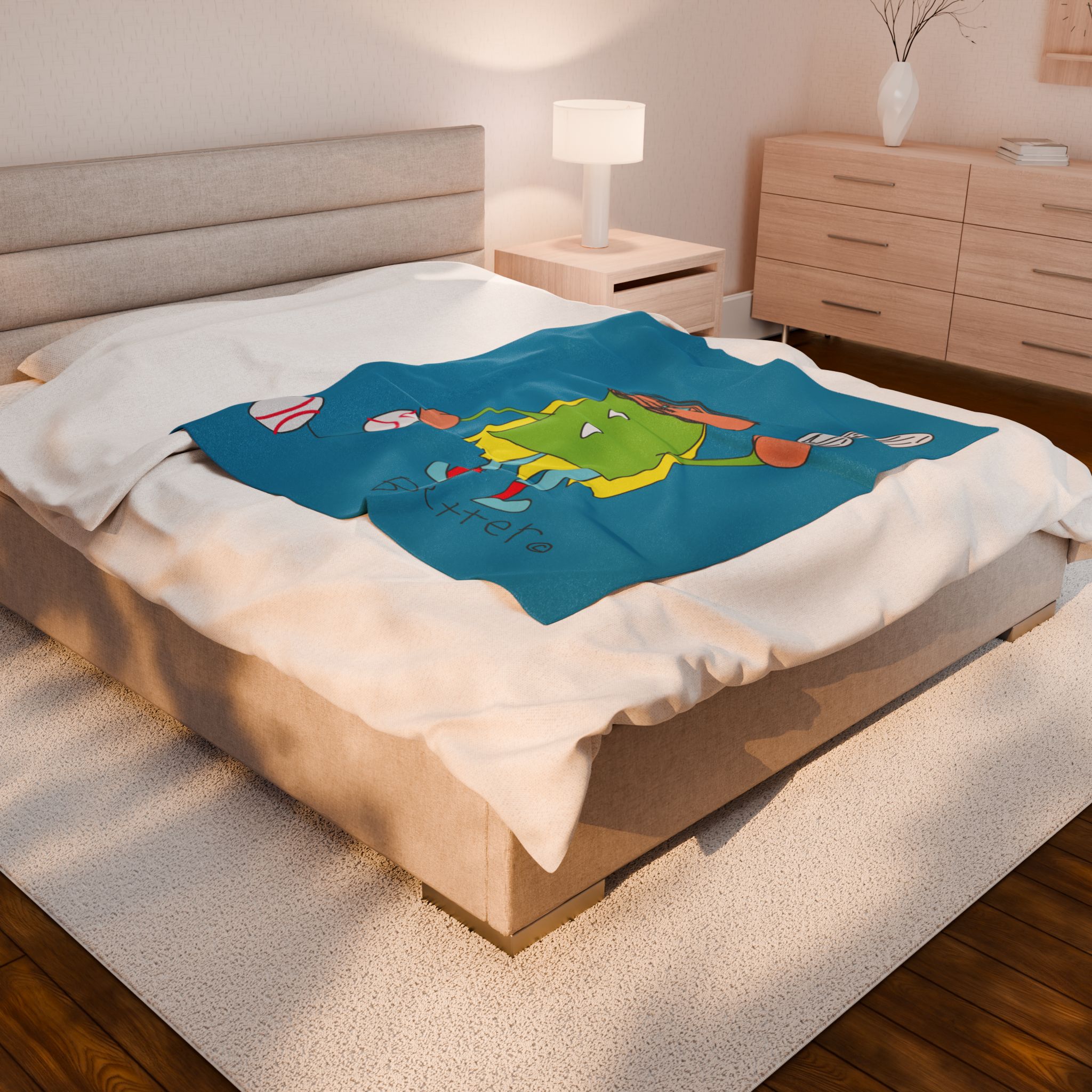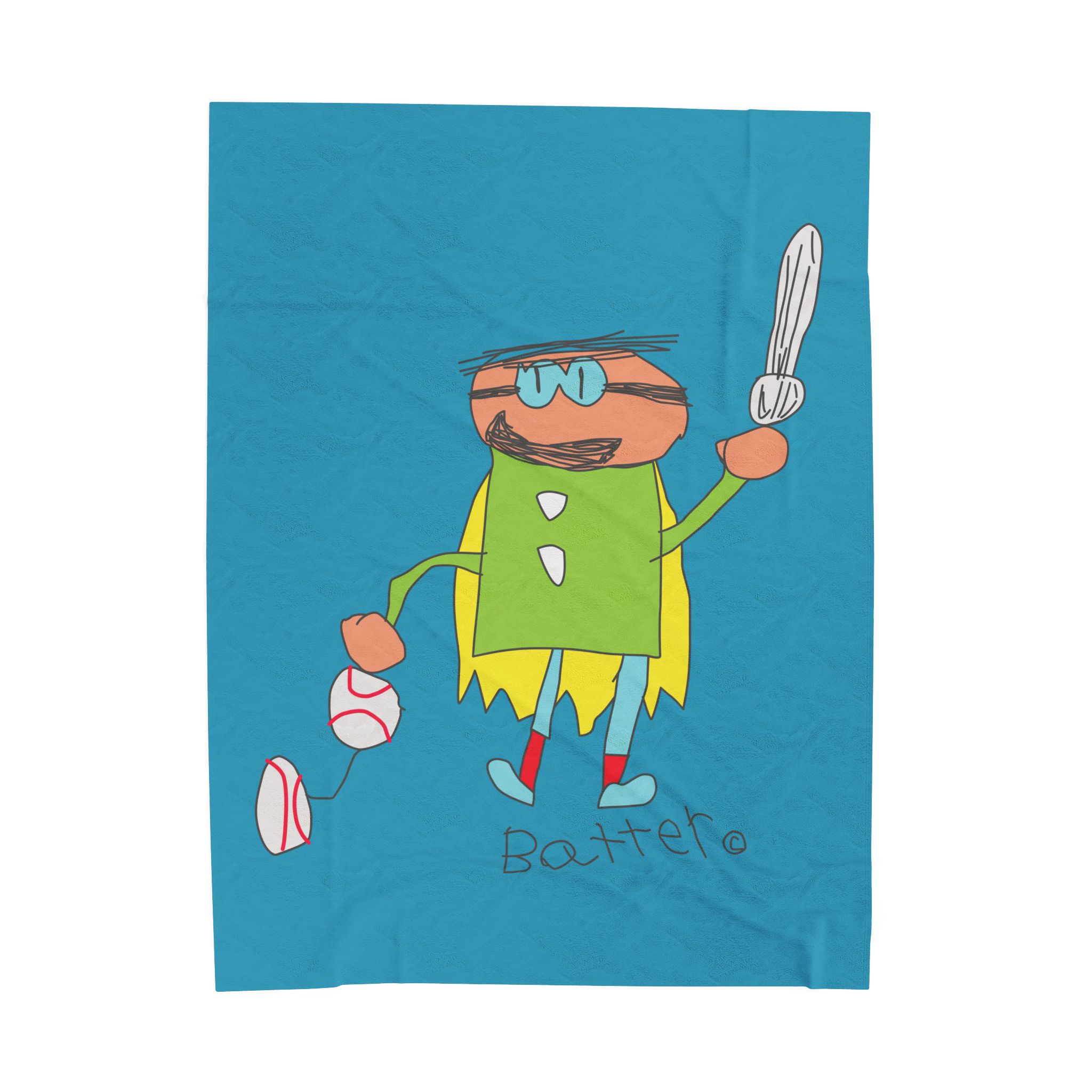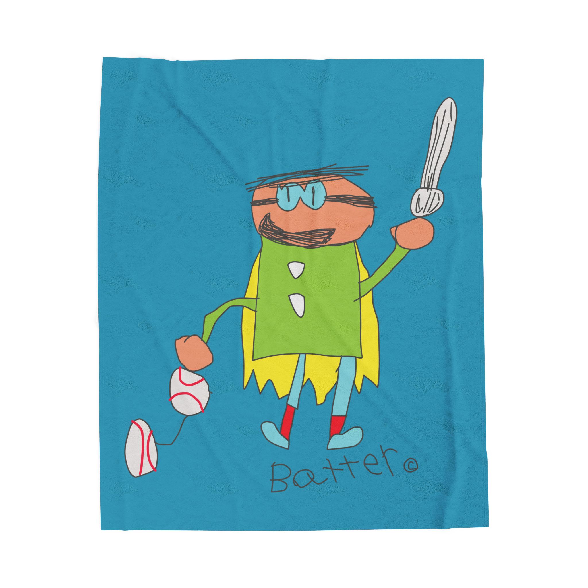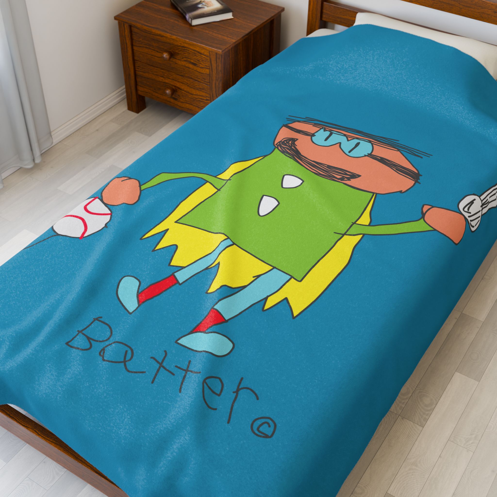 Enjoy our Batter Velveteen Plush Blanket—packed with bold color, playful charm, and soft, medium-heavy comfort. Its lively character artwork brightens the dark backdrop, adding a fun, modern pop to any bedroom, reading nook, or movie night. Lightweight to drape and cozy enough to snuggle, it’s made for everyday comfort.