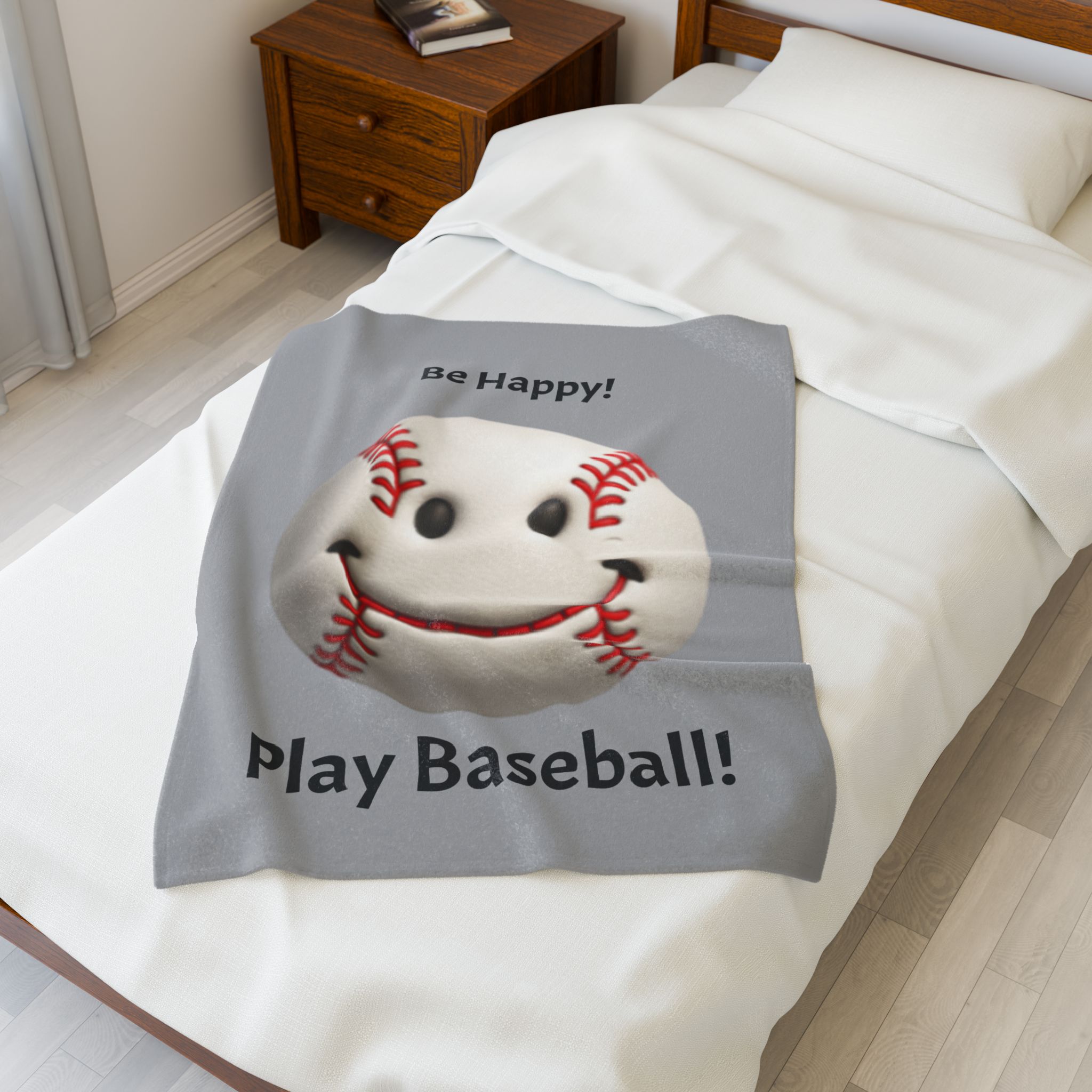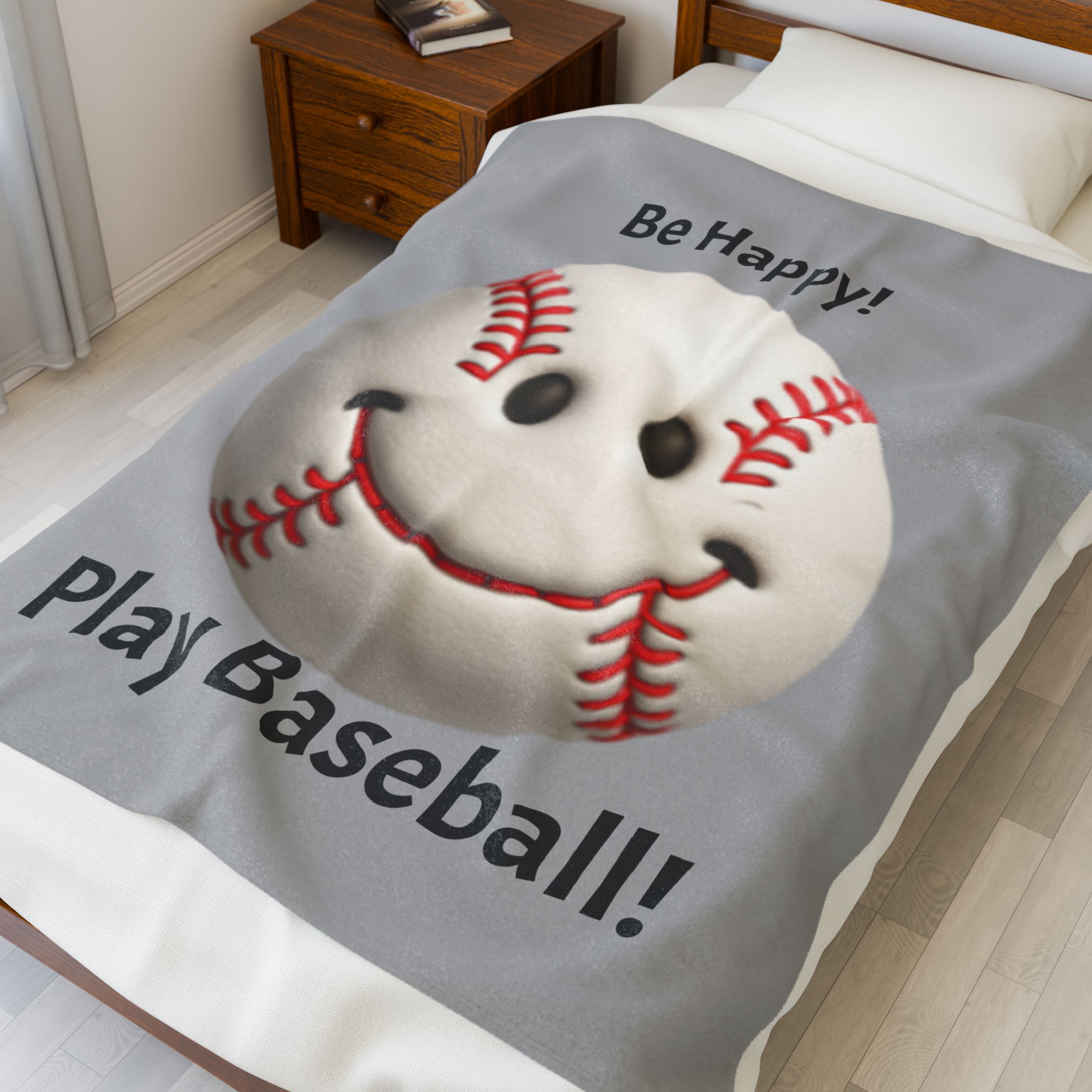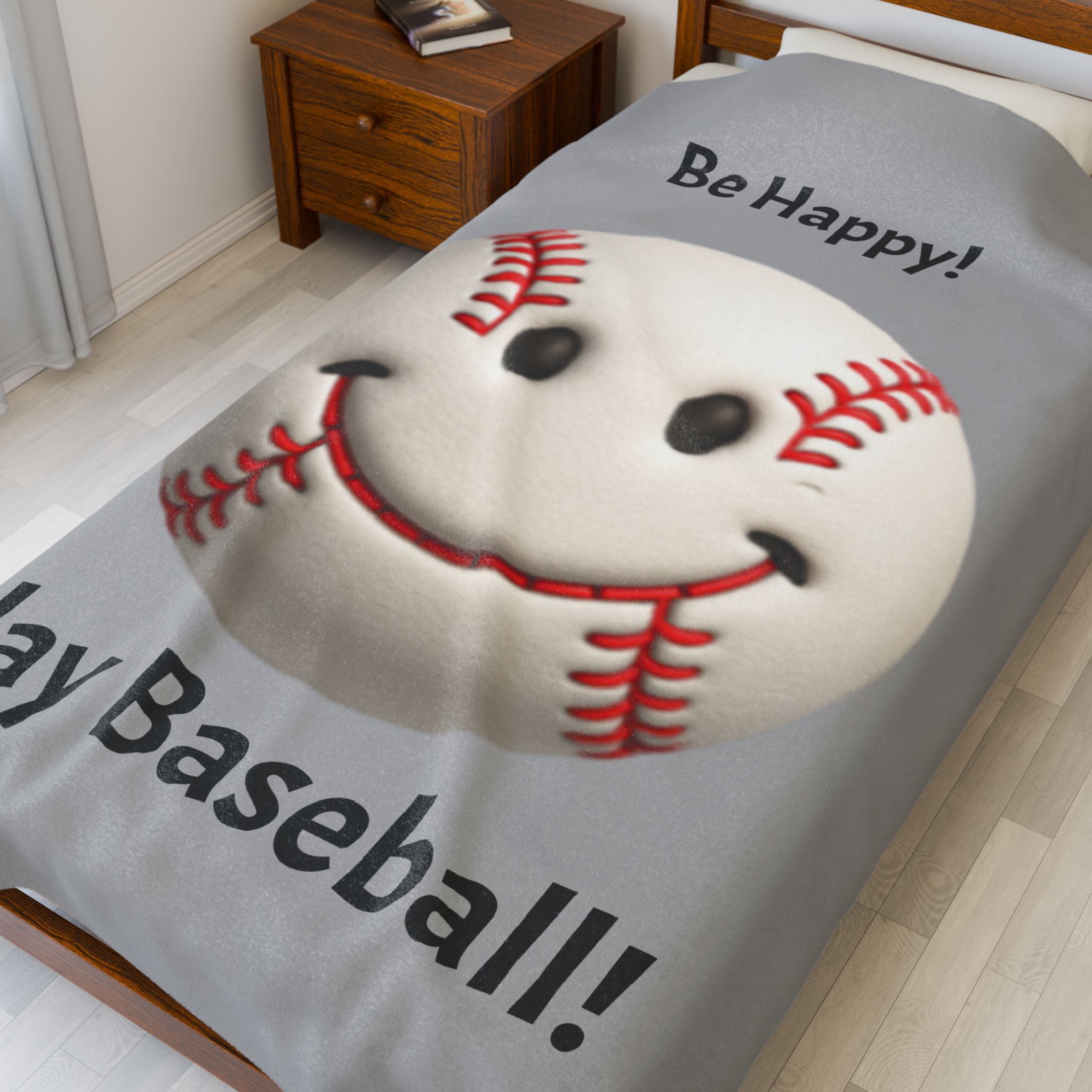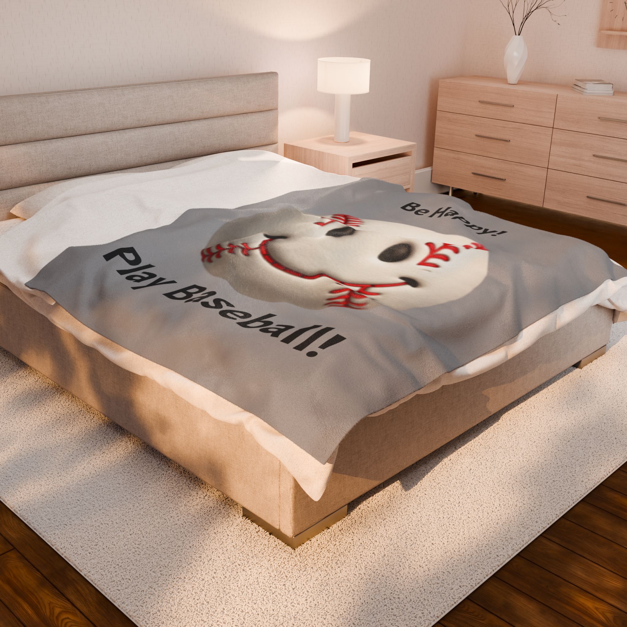Be Happy! Play Baseball! Velveteen Plush Blanket