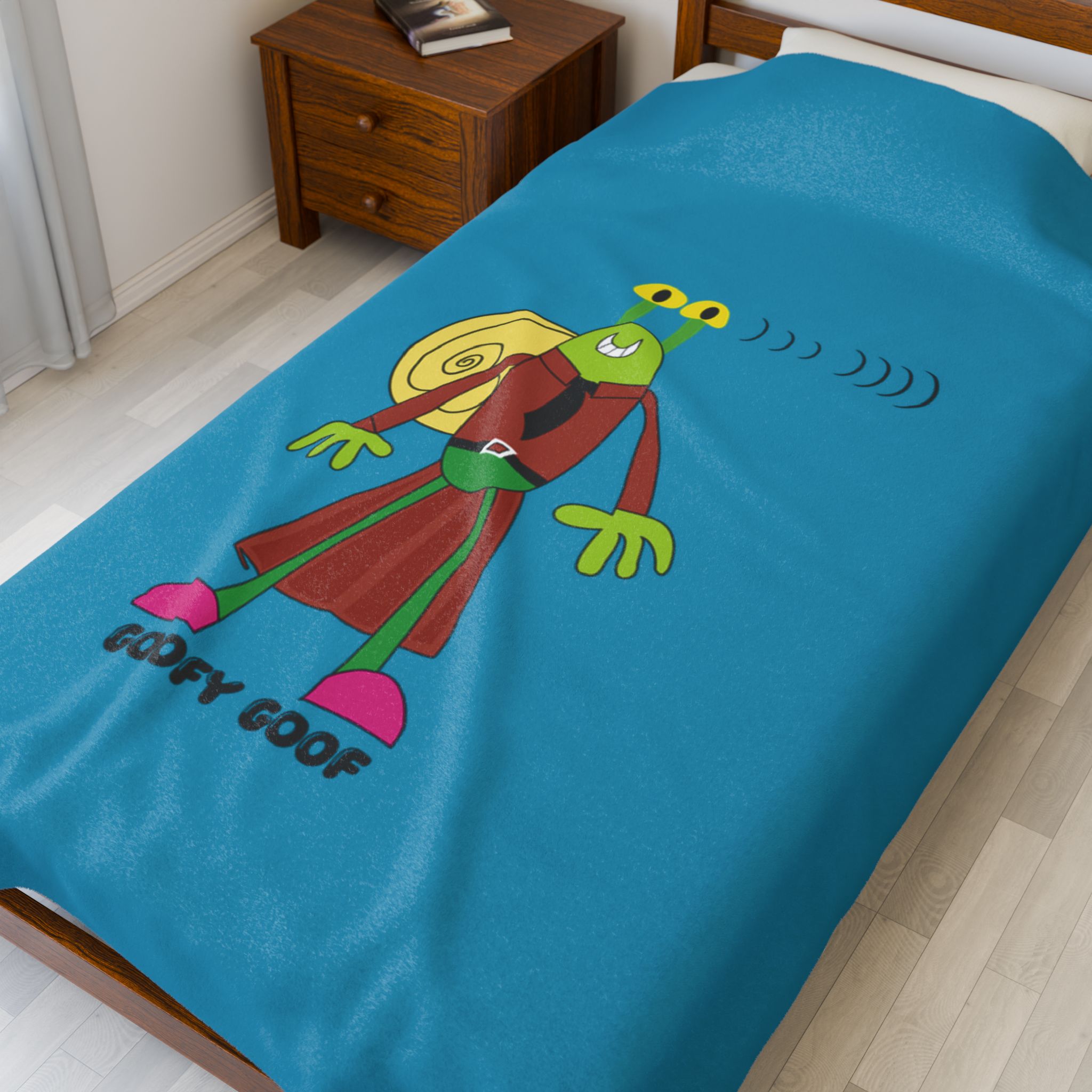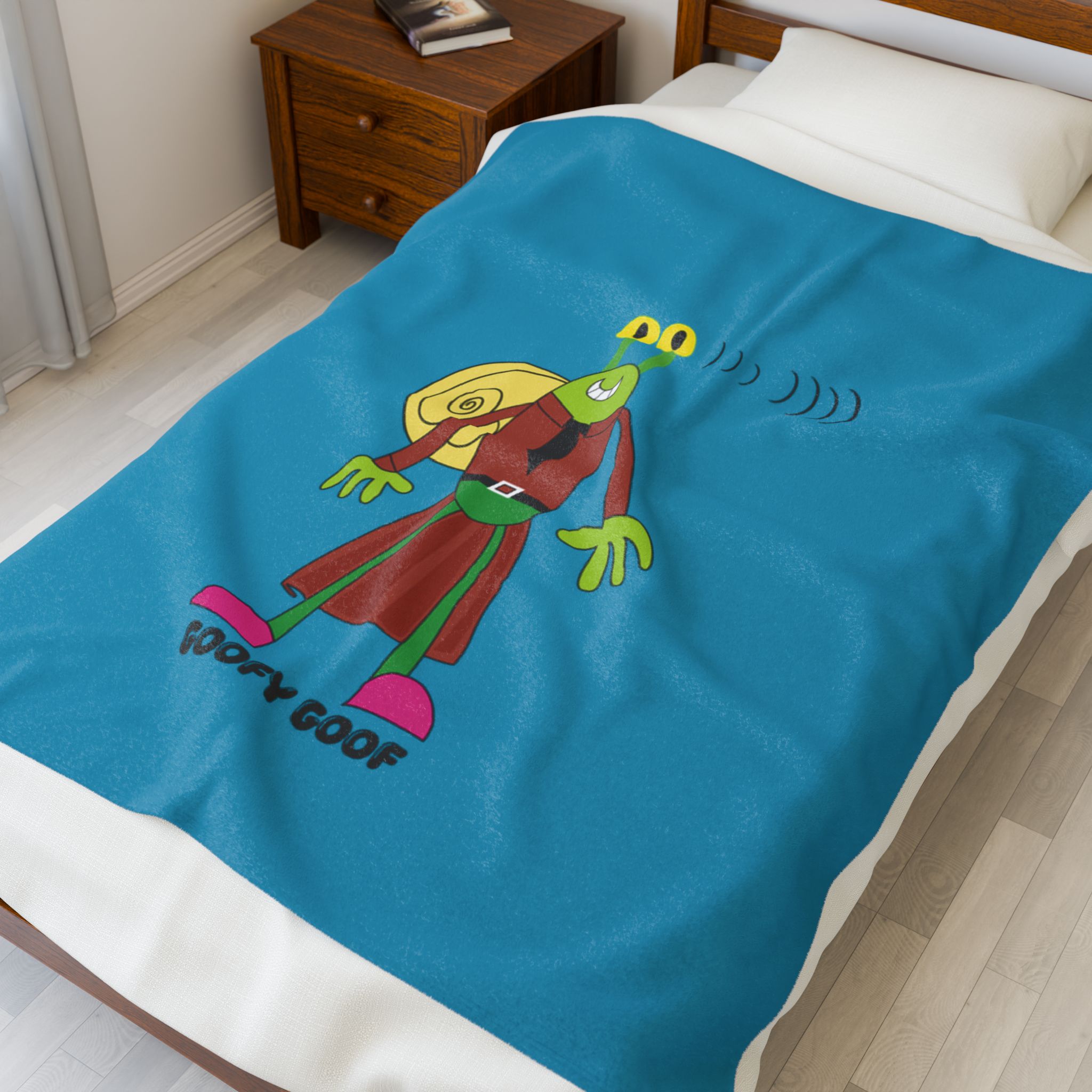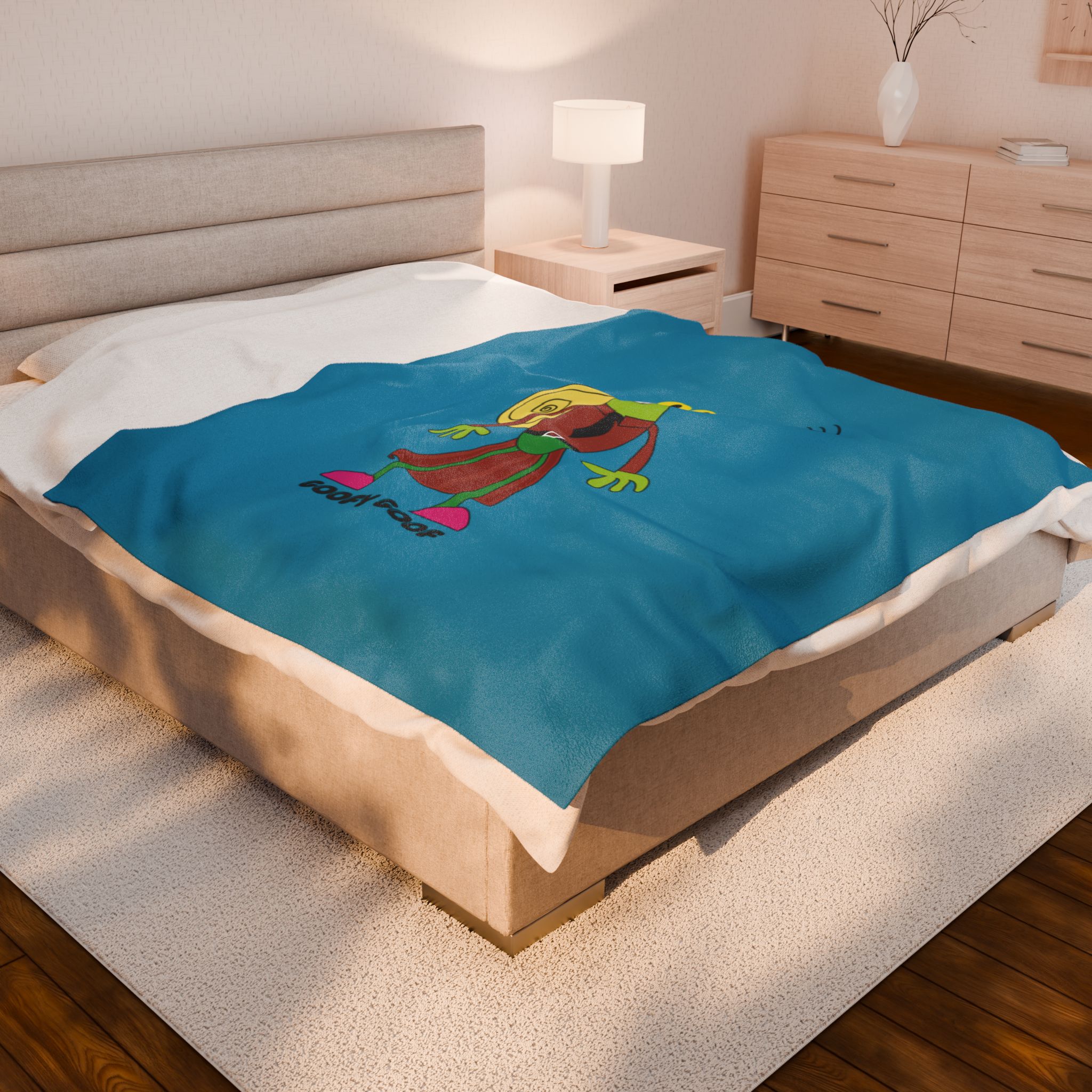 Enjoy the Goofy Goof Velveteen Plush Blanket—bold color, playful energy, and soft, medium-heavy comfort all in one. Its vibrant dragon illustration splashes bright blues, reds, and yellows across a dark backdrop, giving any bedroom, reading nook, or movie night a modern, eye-catching boost. Lightweight to drape, substantial to snuggle, it’s made for everyday use.