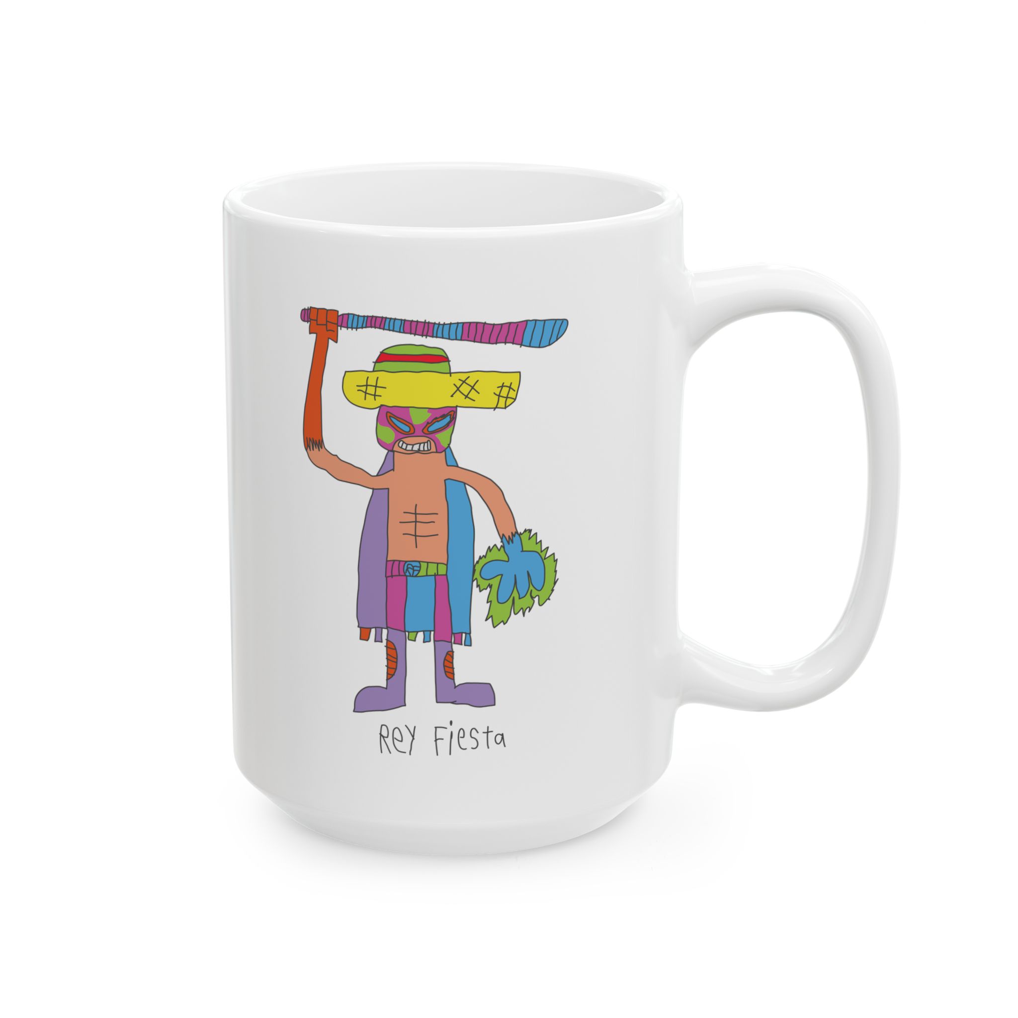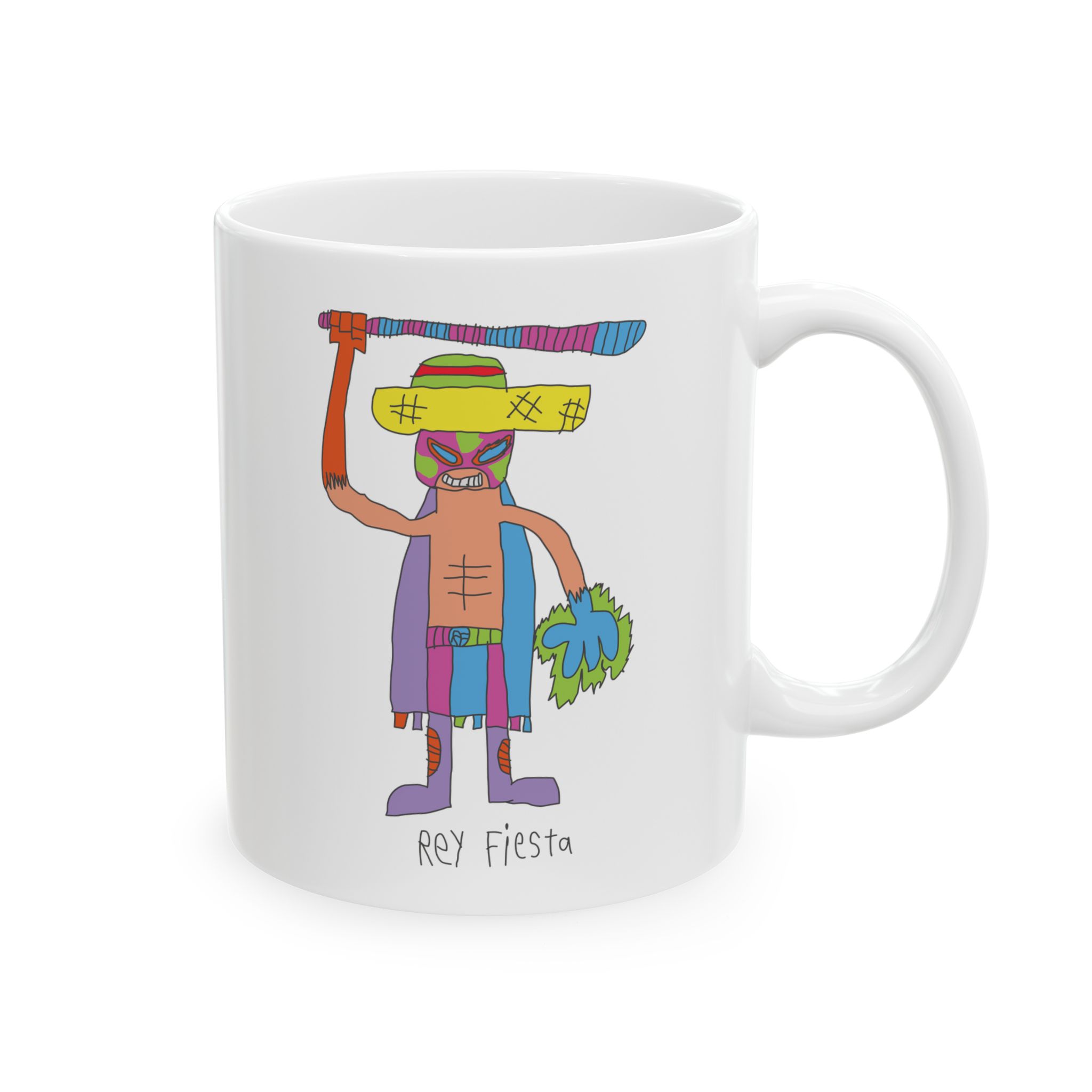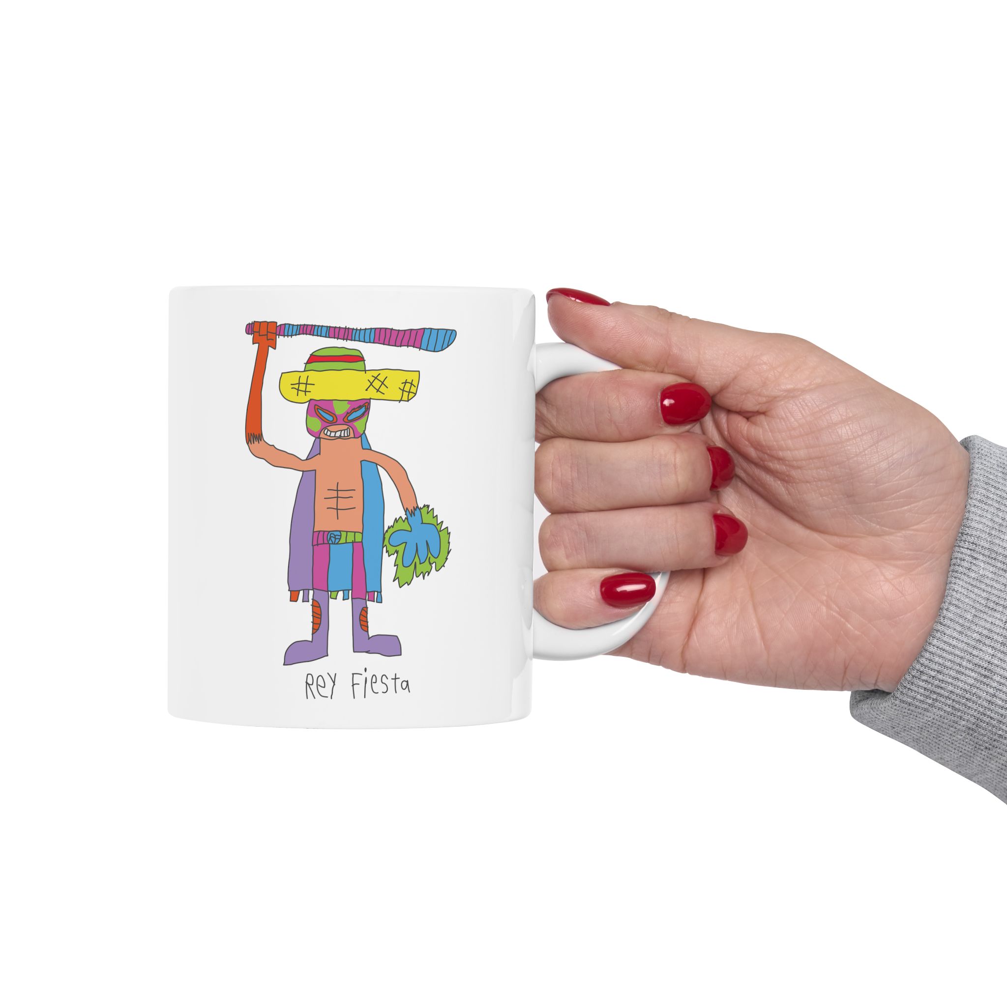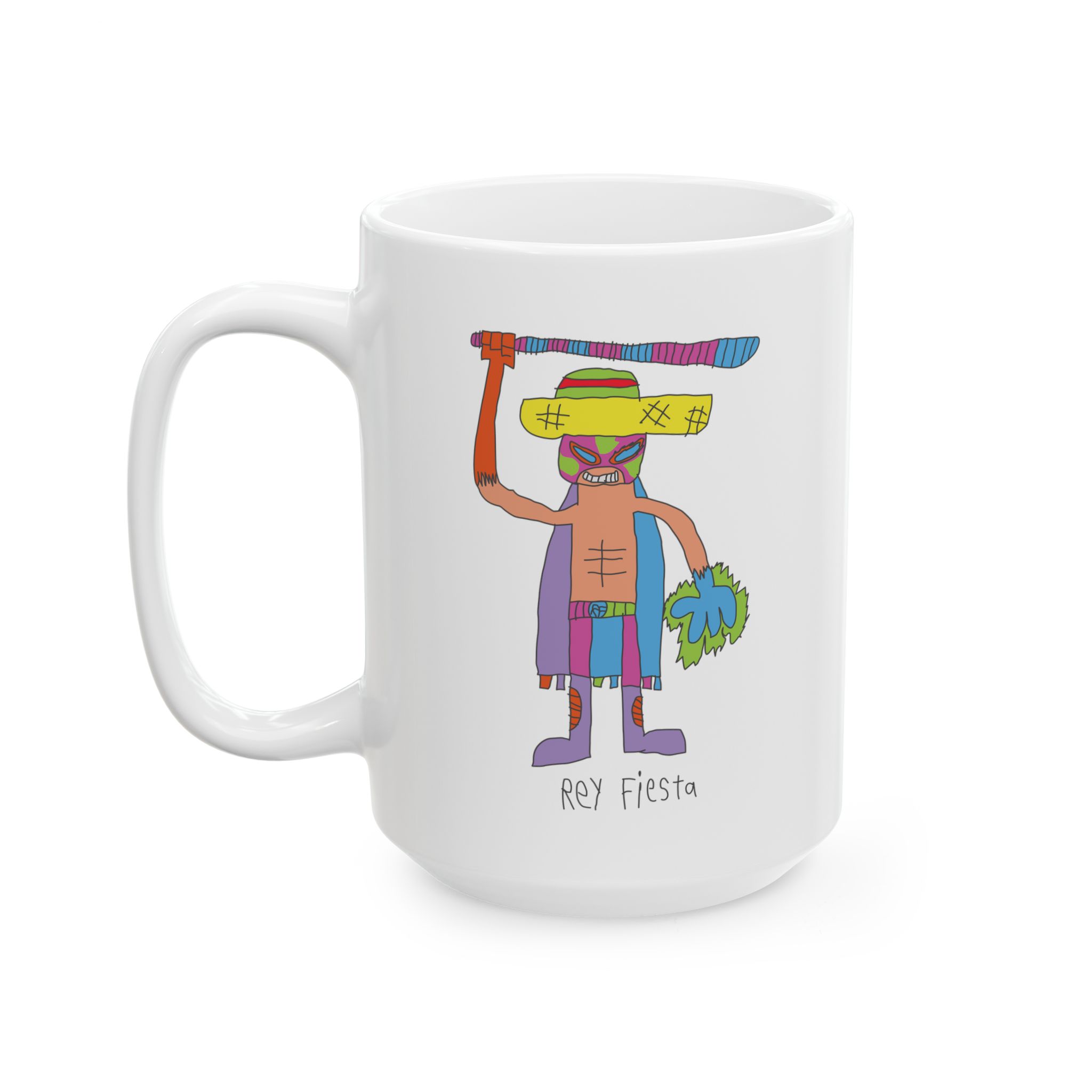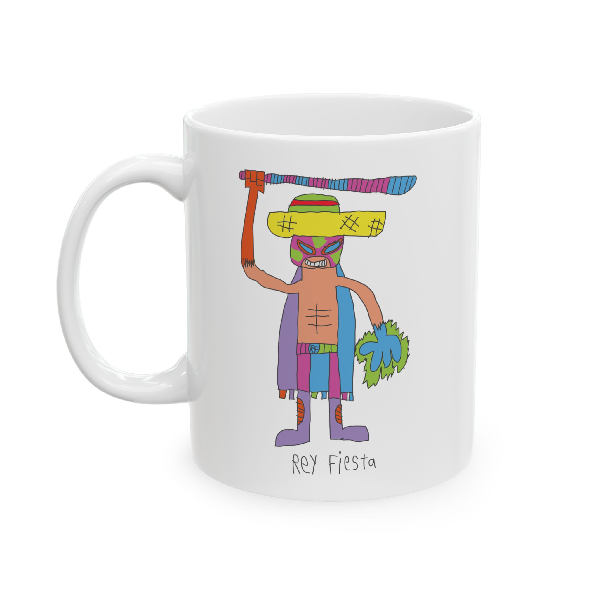 A glossy ceramic mug bursting with color and the signature Rey Fiesta design—lightweight, sturdy, and perfect for morning brews or creative sessions. The vibrant print stays crisp, and it’s fully microwave- and dishwasher-safe for effortless daily use.