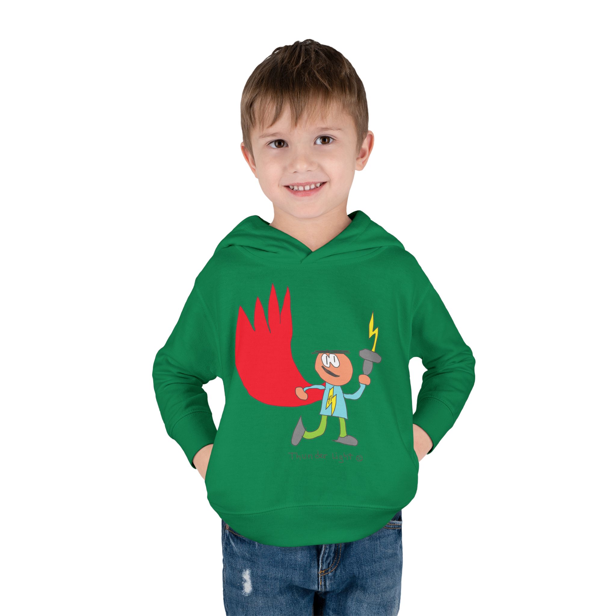 Cozy fleece-knit hoodie featuring our playful Batter character, a soft jersey-lined hood, ribbed cuffs, and handy side pockets. Gentle on skin and tough enough for spills—perfect for adventures, park days, or story time.